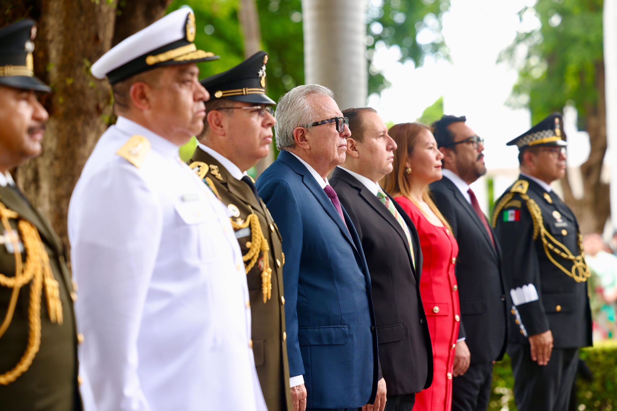 Además de las autoridades ya mencionadas, acompañaron al mandatario estatal en la ceremonia conmemorativa del 215 aniversario del inicio de la guerra de independencia, el Capitán 2do. Piloto Aviador de la Fuerza Aérea, Cristian Eduardo Padilla Martínez, funcionarios miembros del gabinete de Gobierno, representantes de organizaciones civiles, los alumnos de la Banda de Guerra del Colegio de Bachilleres del Gobierno del Estado de Sinaloa y público en general.