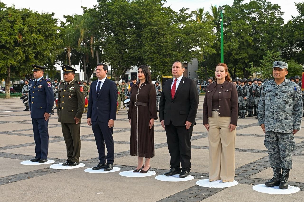 El acto protocolario se desarrolló en la explanada del Palacio de Gobierno, donde se rindieron honores a su memoria mediante el izamiento de la Bandera Nacional a media asta y la entonación del Himno Nacional Mexicano, interpretado por el maestro Humberto Zazueta, con el acompañamiento de la banda de guerra de la Novena Zona Militar y elementos de la Guardia Nacional.